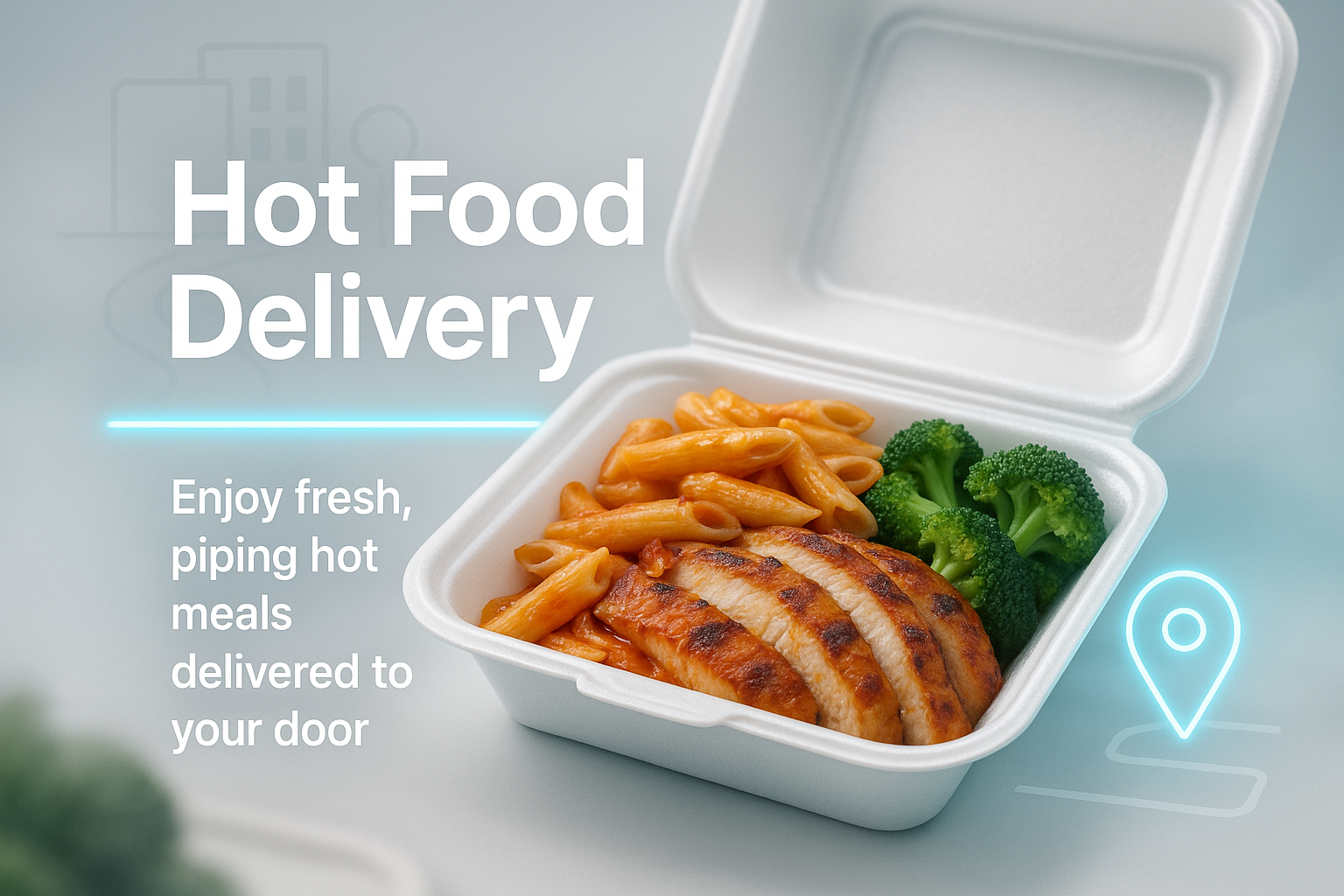 Food Delivery Service Promotional Image Featuring Hot Meals