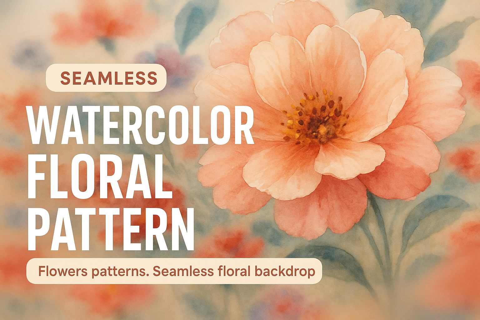 Beautiful seamless floral pattern featuring watercolor flowers, ideal for fabric design, wallpapers, and digital backgrounds. Soft color palette enhances visual appeal.