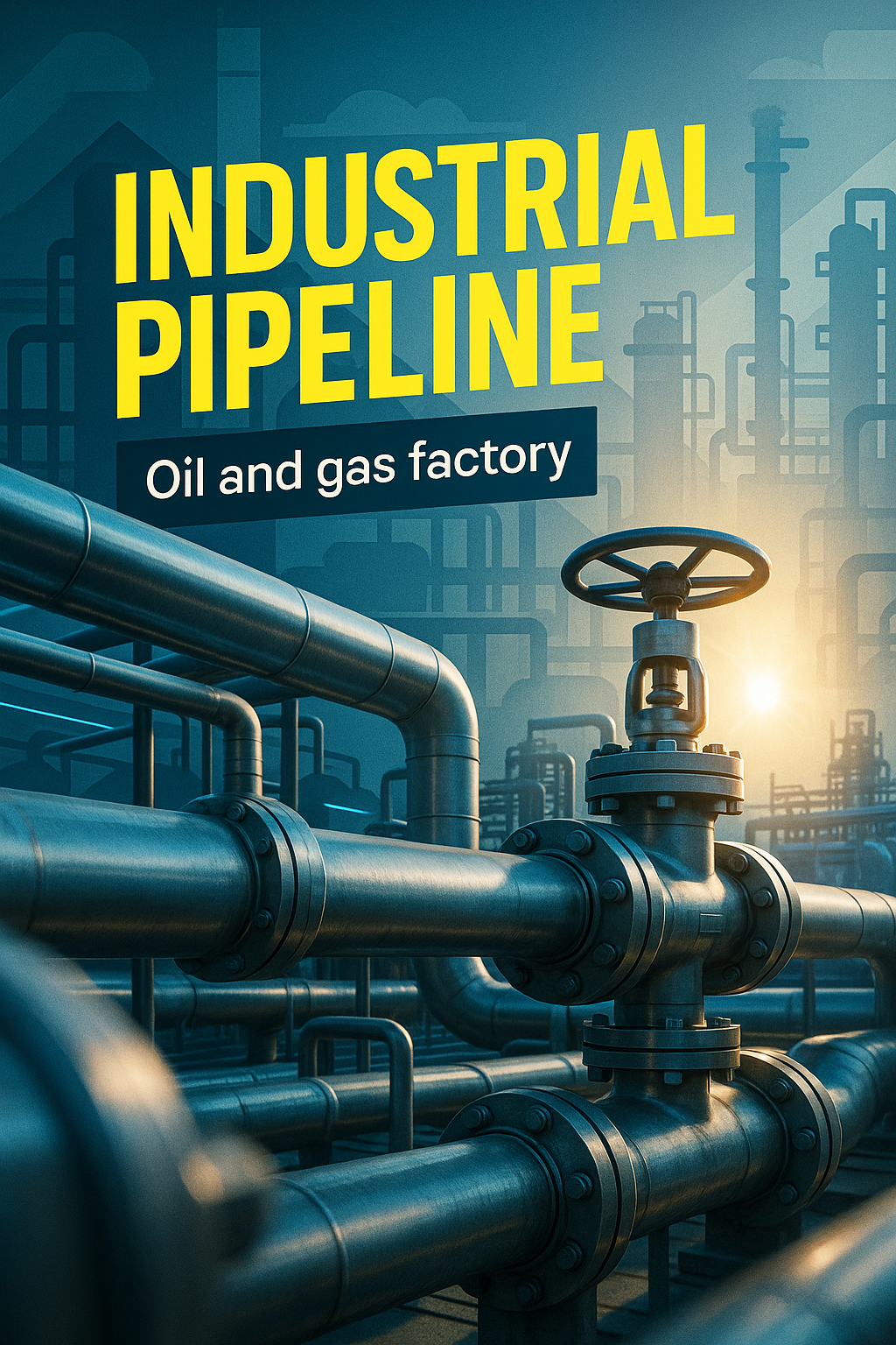 /Collection: /by davooda/Type: PNG/A visually striking image depicting an industrial pipeline at an oil and gas factory, featuring modern design elements and a dramatic lighting effect. Suitable for industrial-themed presentations or marketing materials.