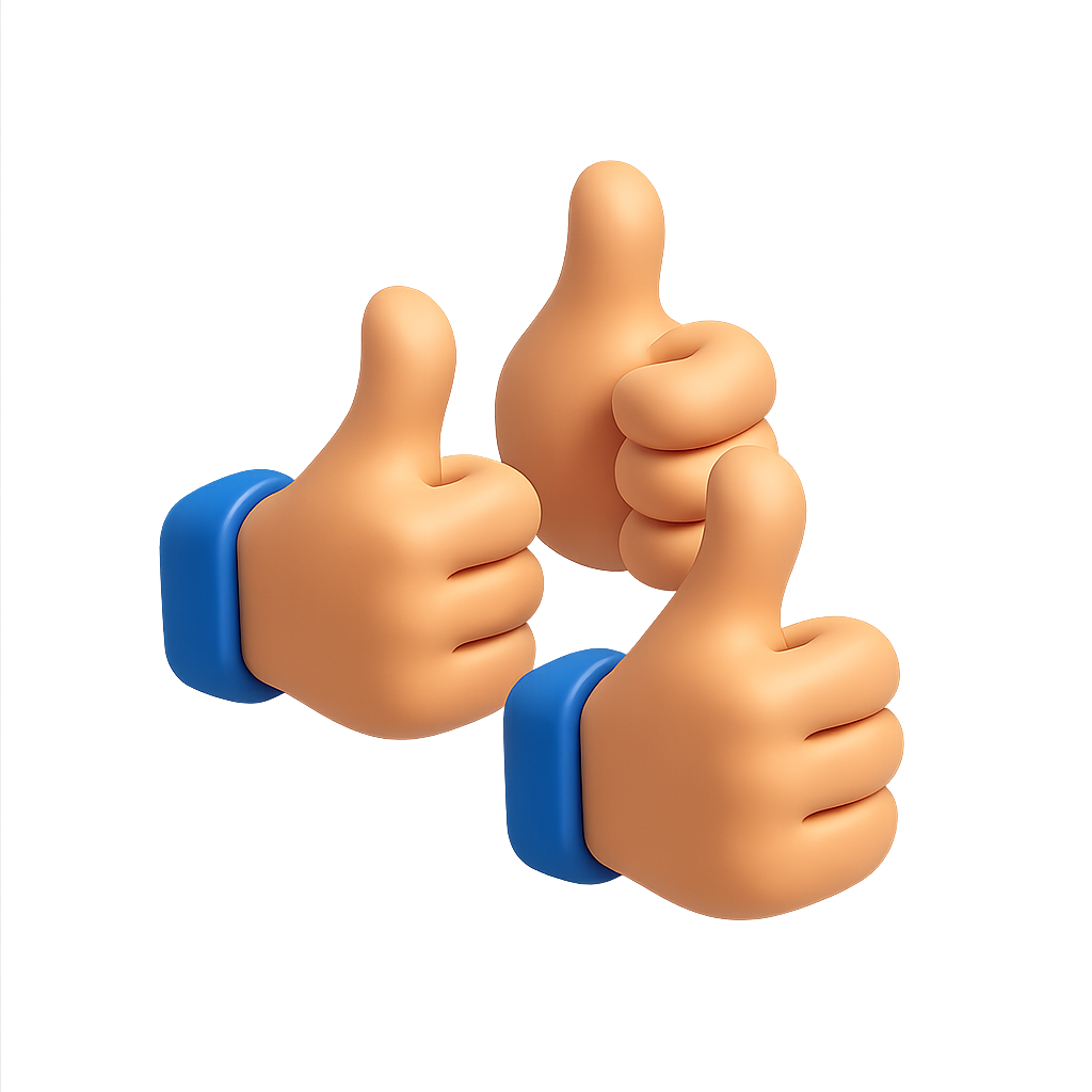 A visually appealing 3D render of three thumbs up icons, featuring a soft glow and isometric design. The icons are presented with a warm color scheme and a smooth finish.