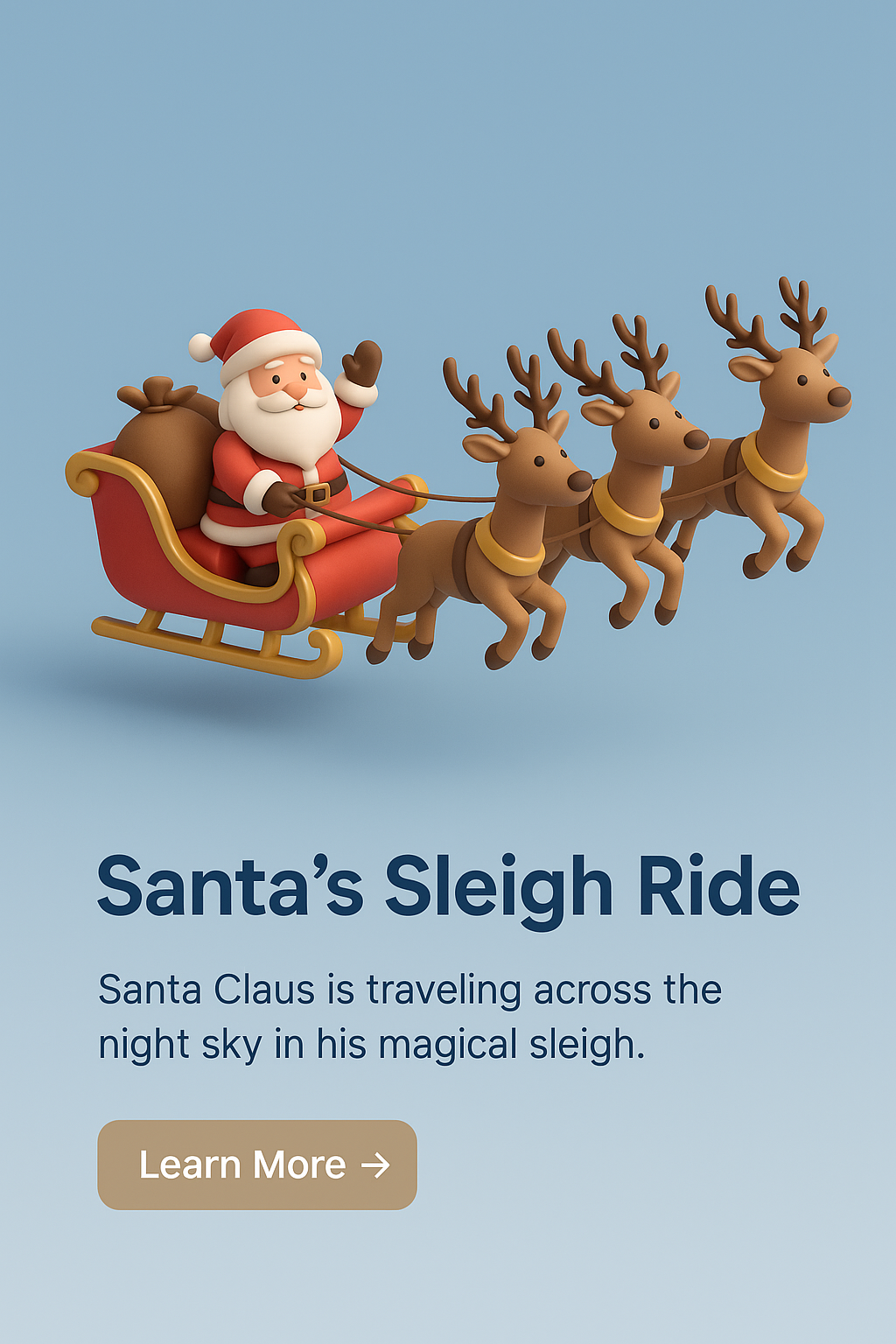 /Collection: /by davooda/Type: PNG/A detailed 3D illustration of Santa Claus flying on a sleigh pulled by reindeer. The scene is zoomed out, showcasing a smooth gradient background with minimal details.