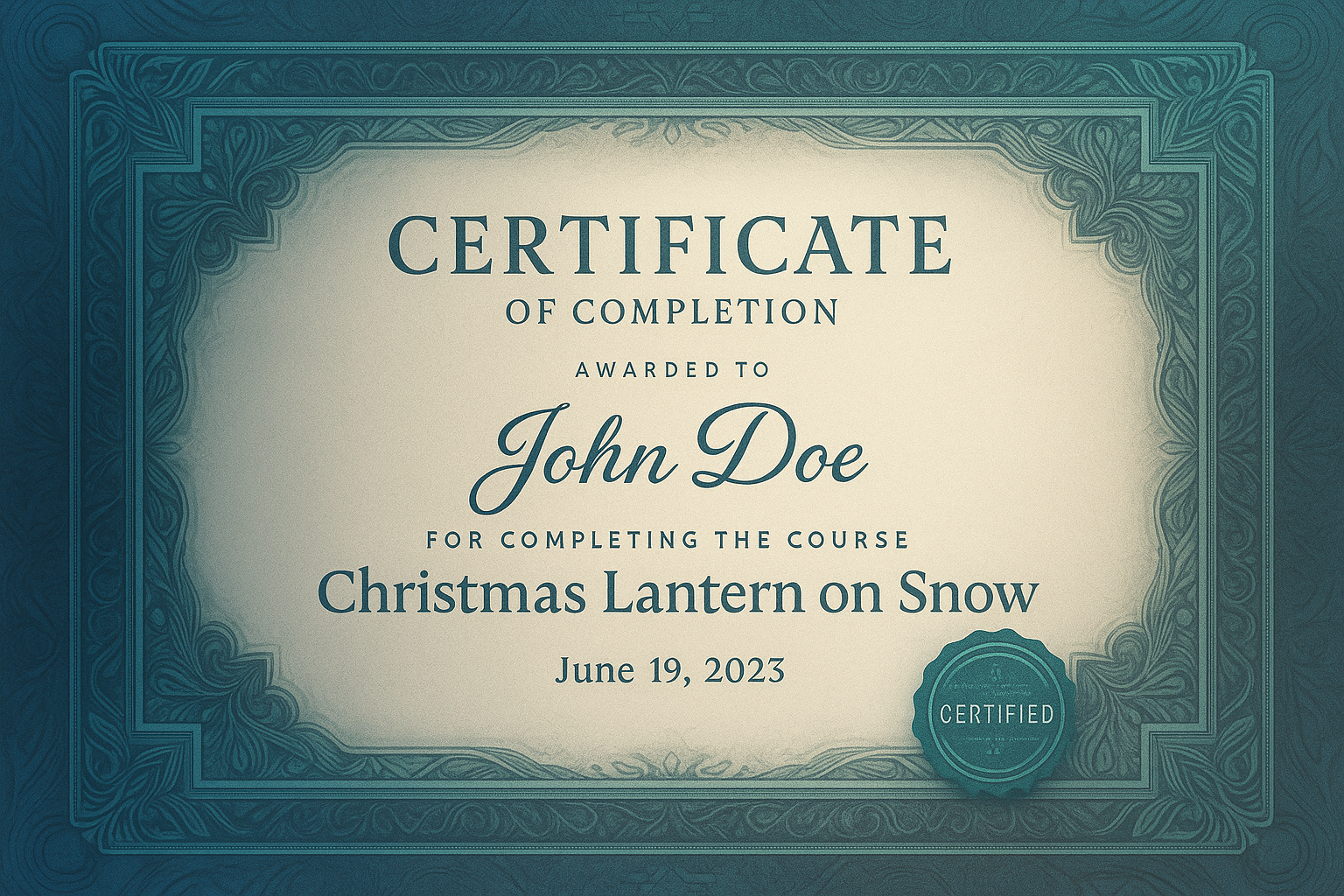 A beautifully designed certificate of completion featuring ornate borders and a formal layout, ideal for educational achievements or course completions.
