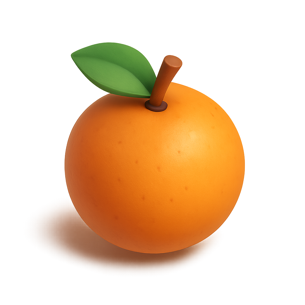 Stylized 3D Citrus Icon with Leaf and Smooth Finish