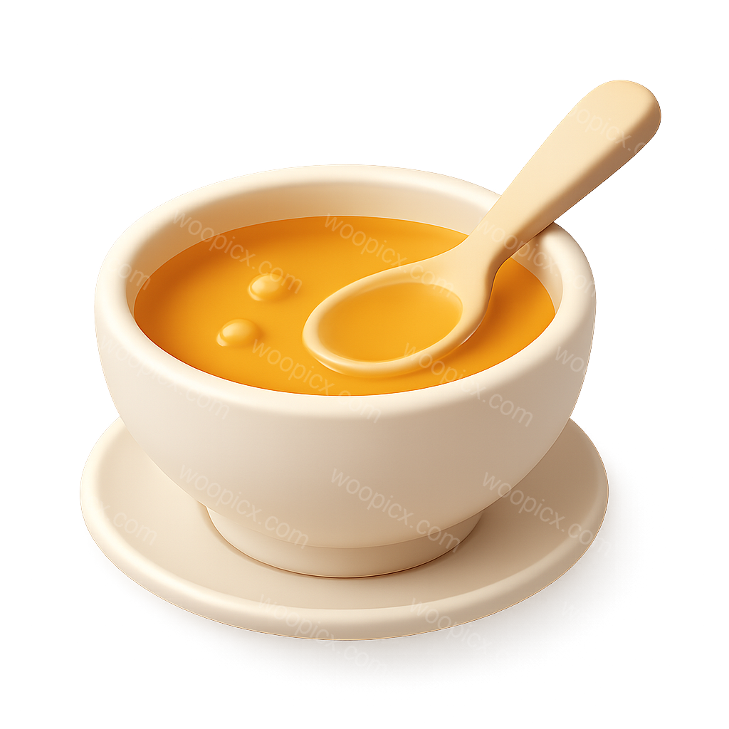 A visually appealing 3D representation of a bowl of broth soup featuring a spoon. The icon showcases a warm, inviting yellow color against a subtle background, emphasizing its three-dimensional form.