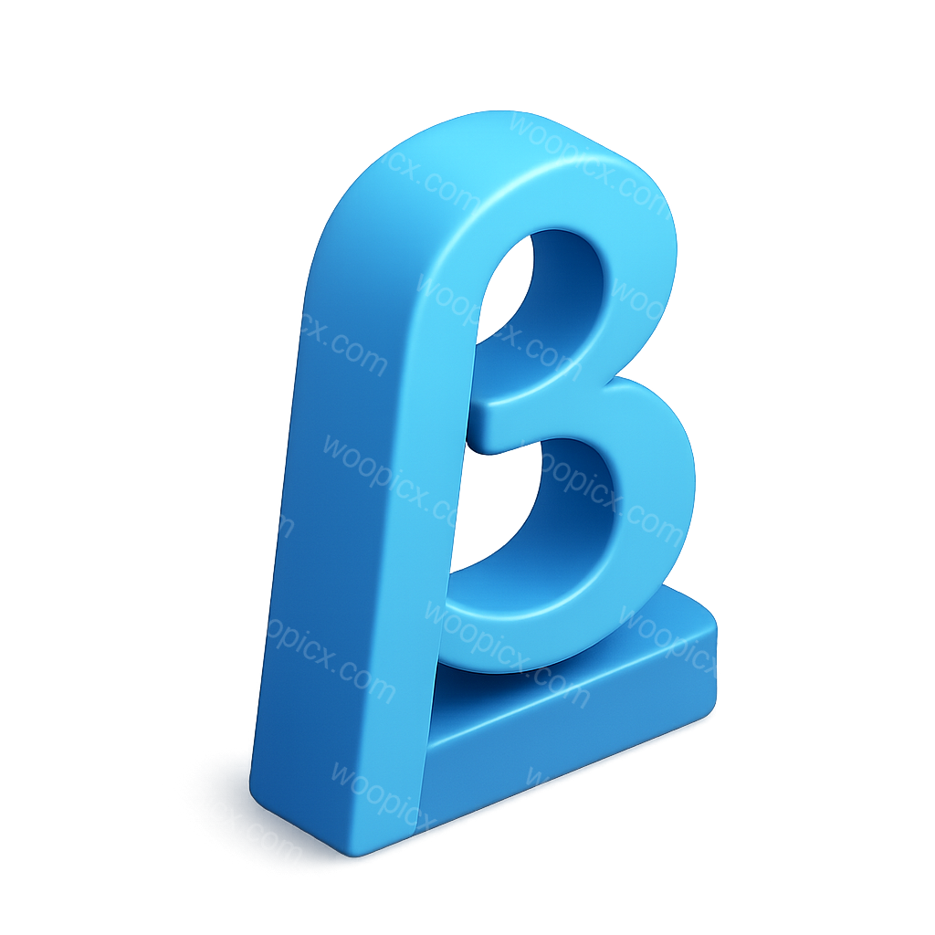 /Premium/Collection: /by davooda/Type: PNG/A stylized 3D beta icon presented in a three-quarter view. The icon features a smooth, glossy blue finish against a dark background, emphasizing its volumetric design.
