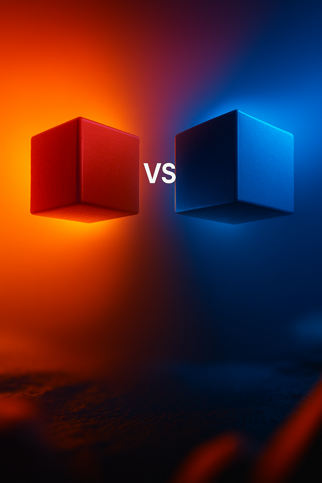 This image features two cubes, one red and one blue, set against a gradient background, symbolizing competition. Ideal for gaming or promotional content.