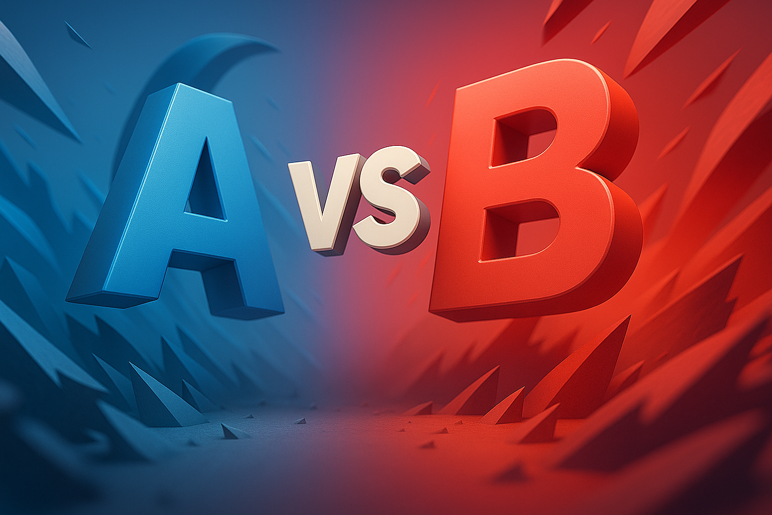 /Collection: /by davooda/Type: PNG/This image features a vibrant A vs B design, ideal for showcasing competition or comparison themes. The contrasting colors and 3D text create a striking visual appeal.