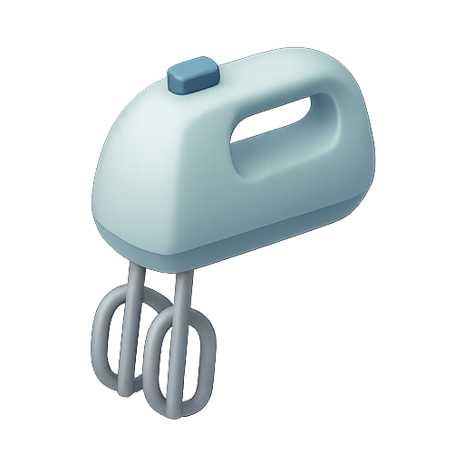 A modern and minimalist illustration of an electric hand mixer, showcasing a sleek design and soft color palette. Ideal for culinary blogs, kitchen product promotions, or recipe websites.