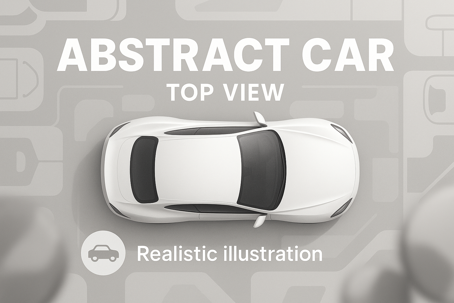A top view illustration of a modern abstract car featuring a clean and minimalistic design. Ideal for automotive marketing, presentations, or digital content.