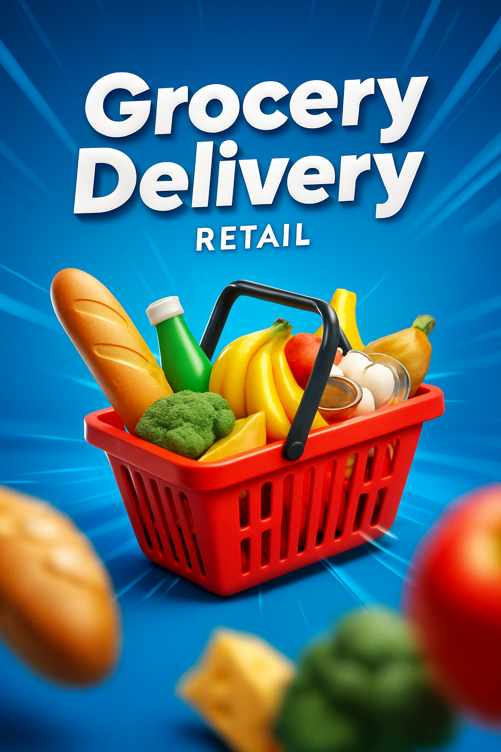 Dynamic Supermarket Scene with Grocery Delivery Theme