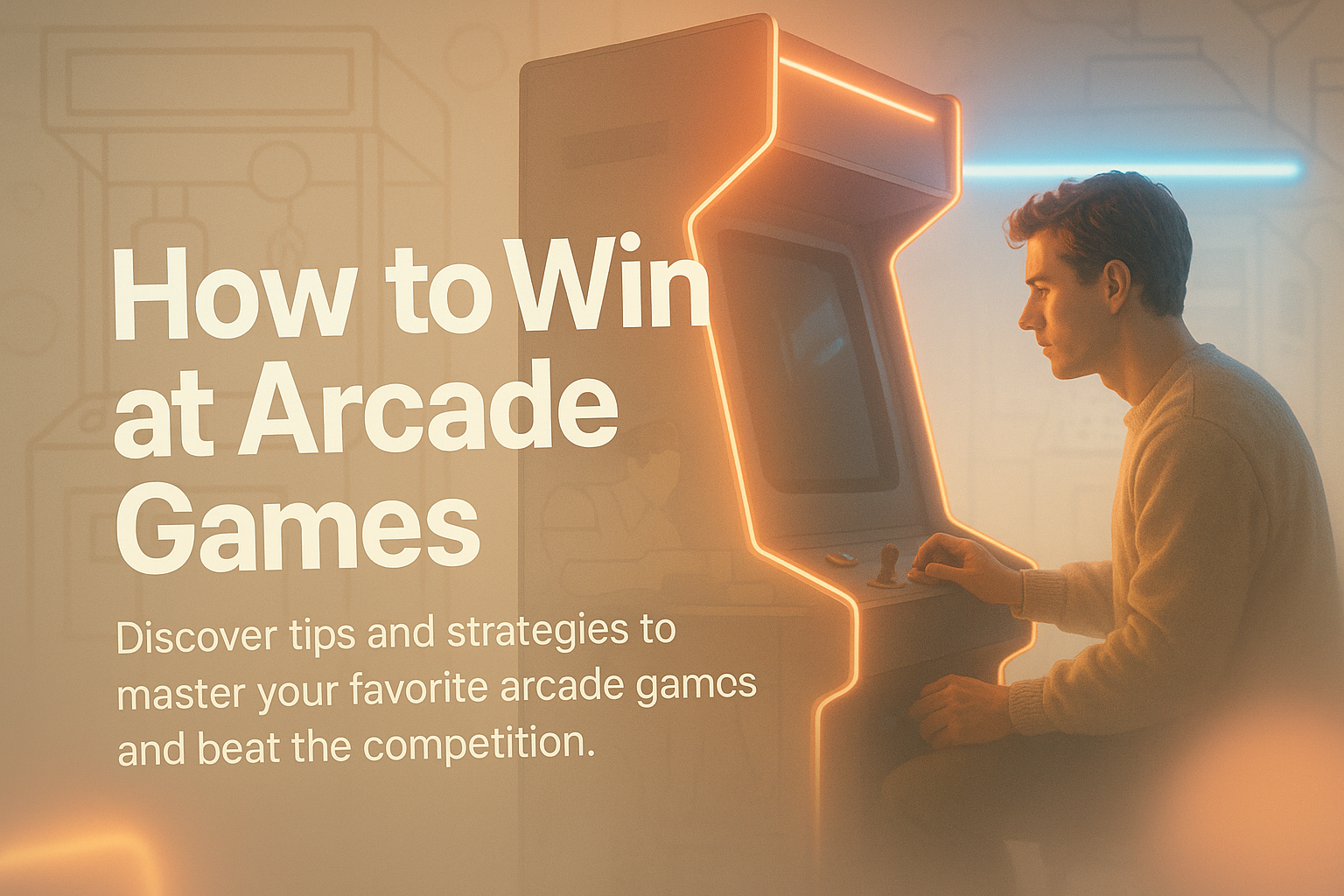/Collection: /by davooda/Type: PNG/Stylish graphic featuring a young man engaging with an arcade game, designed to promote tips and strategies for mastering arcade games. Suitable for gaming blogs or tutorials.