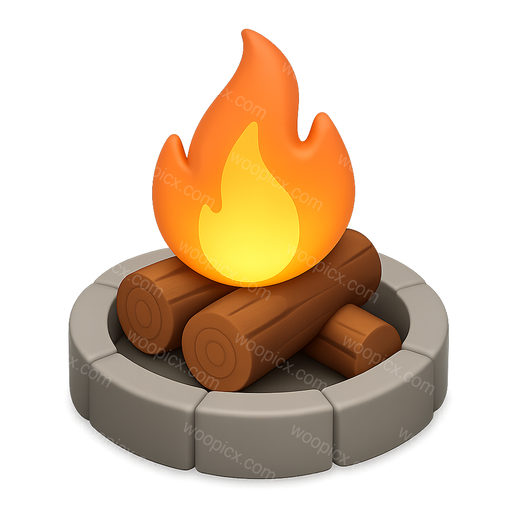 Stylized 3D Fire Pit Icon with Logs and Flames