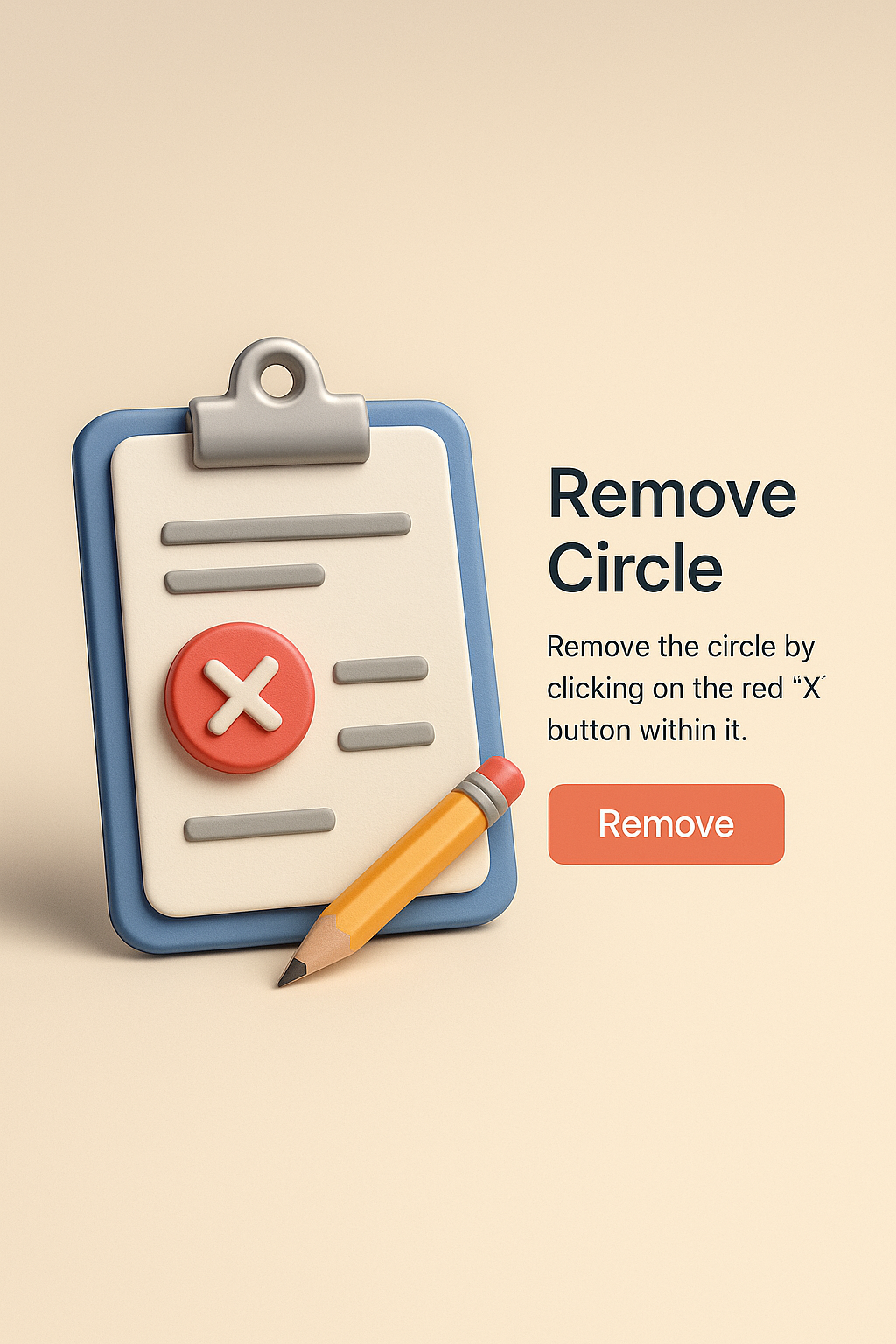 /Collection: /by davooda/Type: PNG/A realistic 3D illustration featuring a clipboard with a red 'X' button and a pencil, emphasizing a remove action. The design is zoomed out to show details clearly.