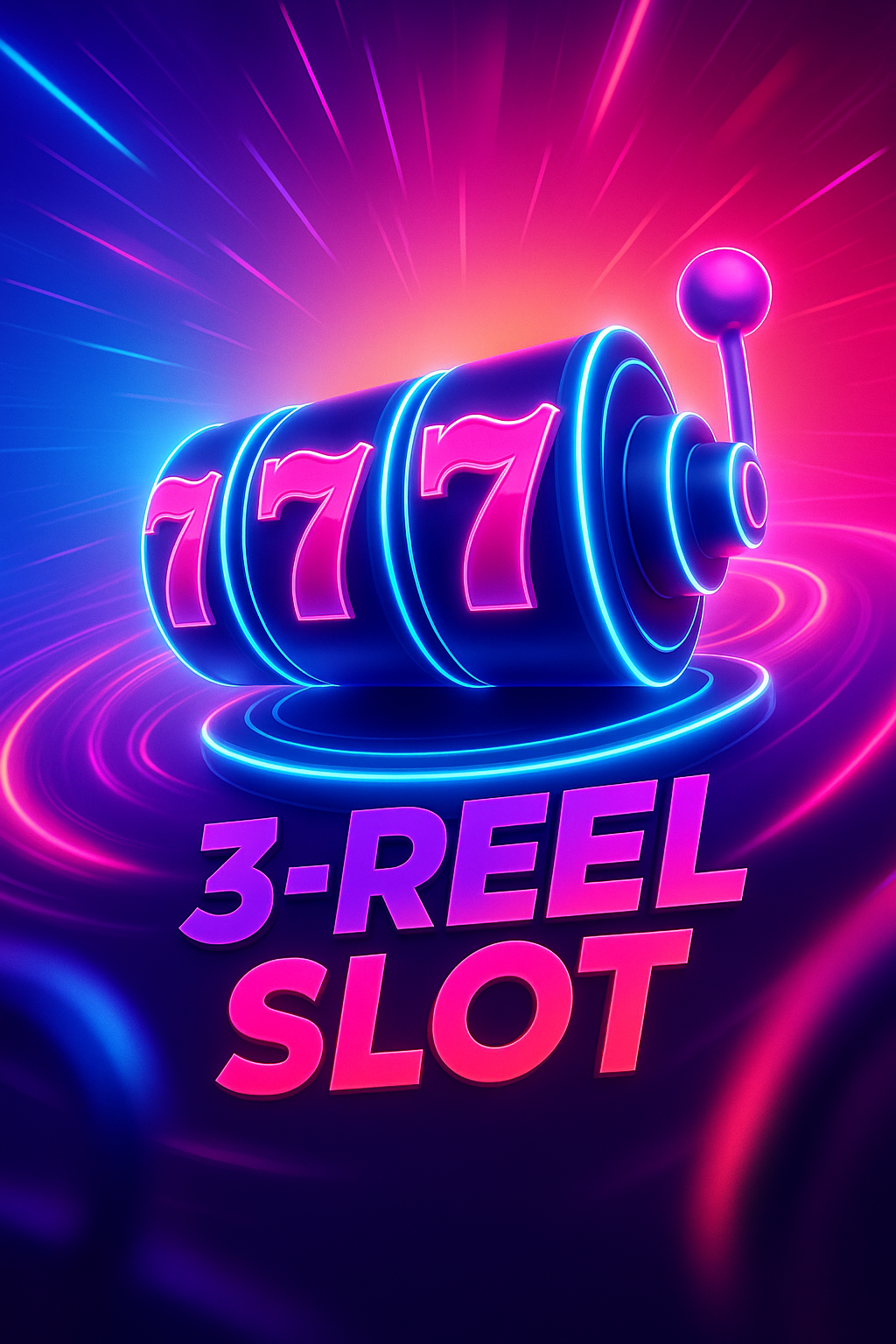 A vibrant 3-reel slot machine with glowing neon elements. The dynamic design features bright colors, a sleek gradient background, and an engaging composition, capturing the excitement of casino gaming.