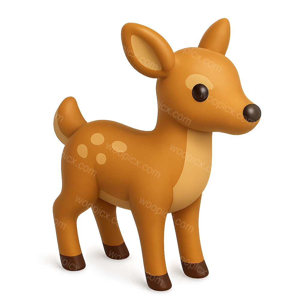 A charming 3D representation of a doe, featuring a stylized design. The doe stands in a three-quarter view with a smooth, volumetric look and a transparent background.