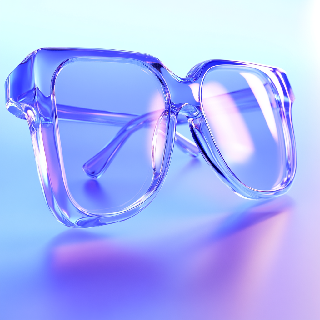 A visually striking image of transparent glasses showcased against a gradient background, perfect for fashion or eyewear marketing.
