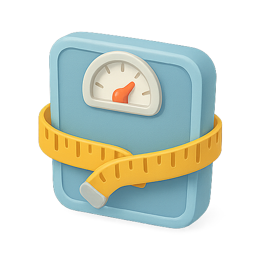 /Collection: /by davooda/Type: PNG/A playful 3D illustration of a bathroom scale wrapped with a measuring tape, designed to convey themes of health and fitness. Ideal for apps or websites focused on wellness.