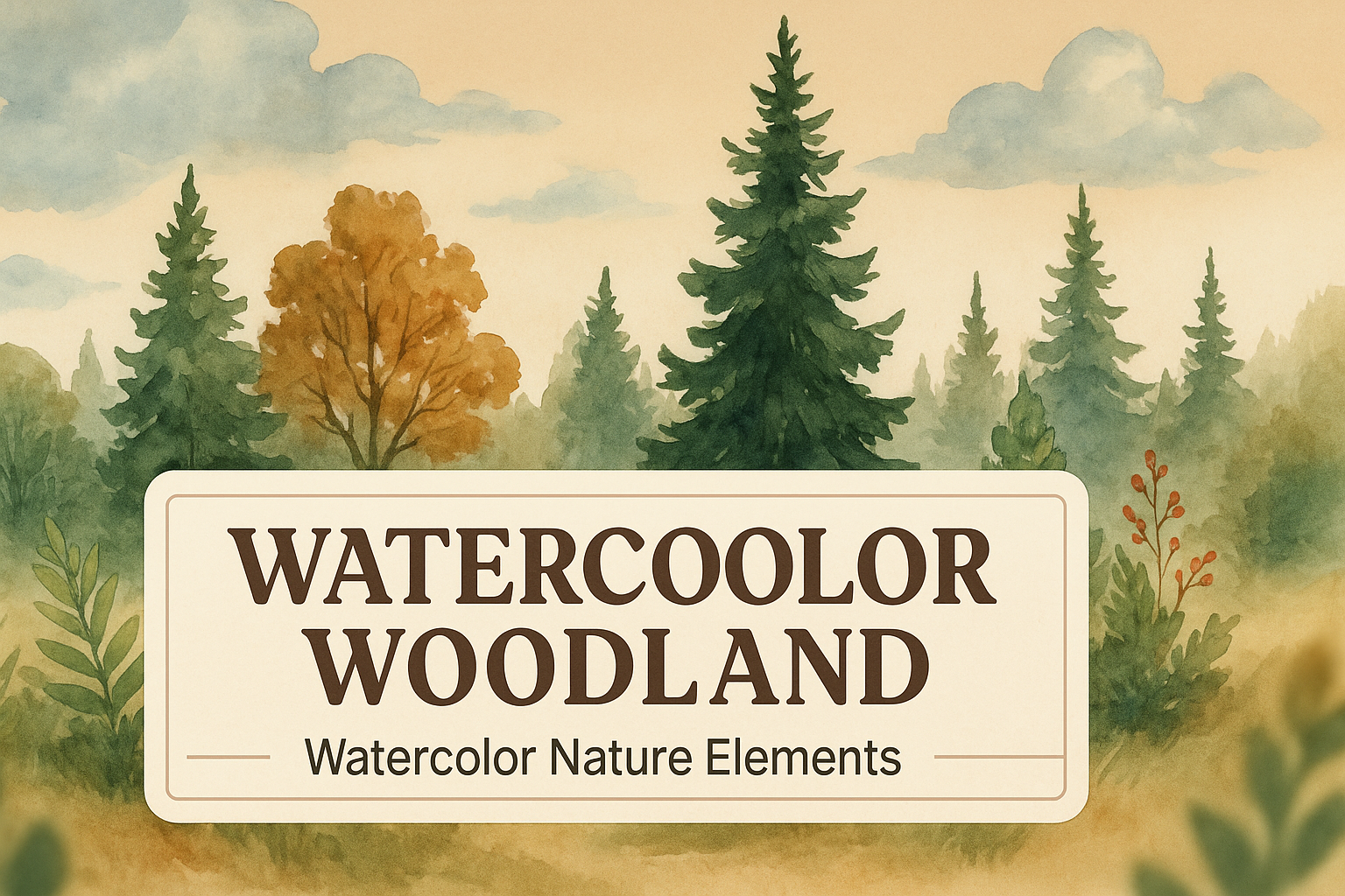 A serene watercolor illustration depicting a woodland scene with various trees and natural elements, ideal for nature-themed projects or decor.