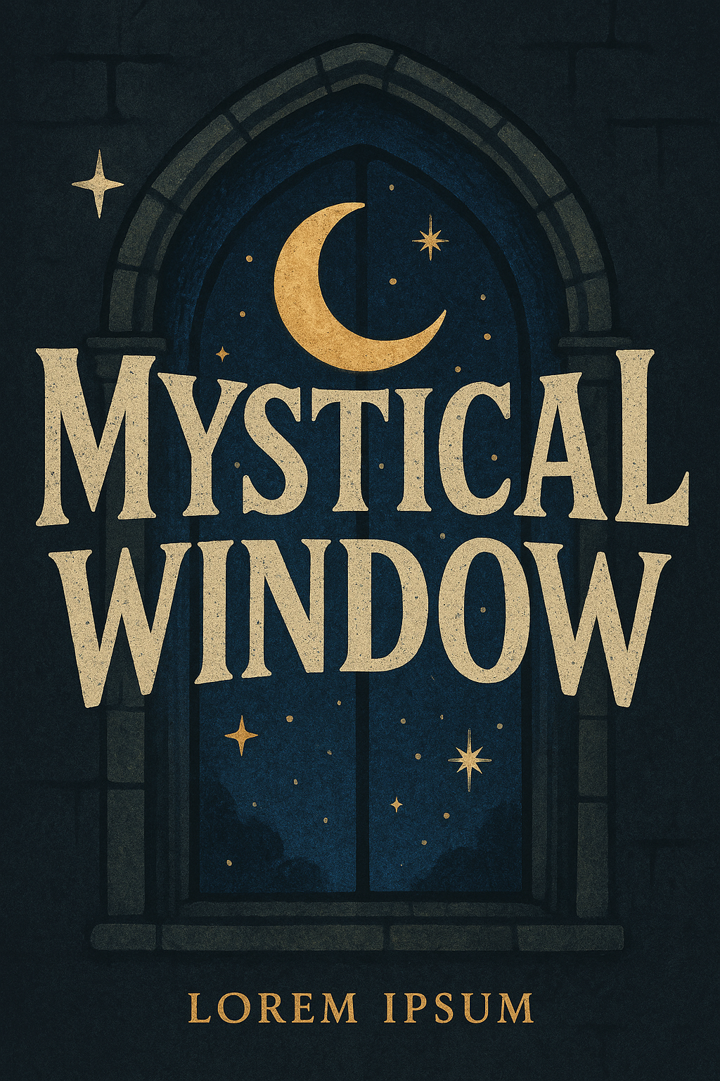 Mystical Themed Illustration Featuring a Window with Night Sky