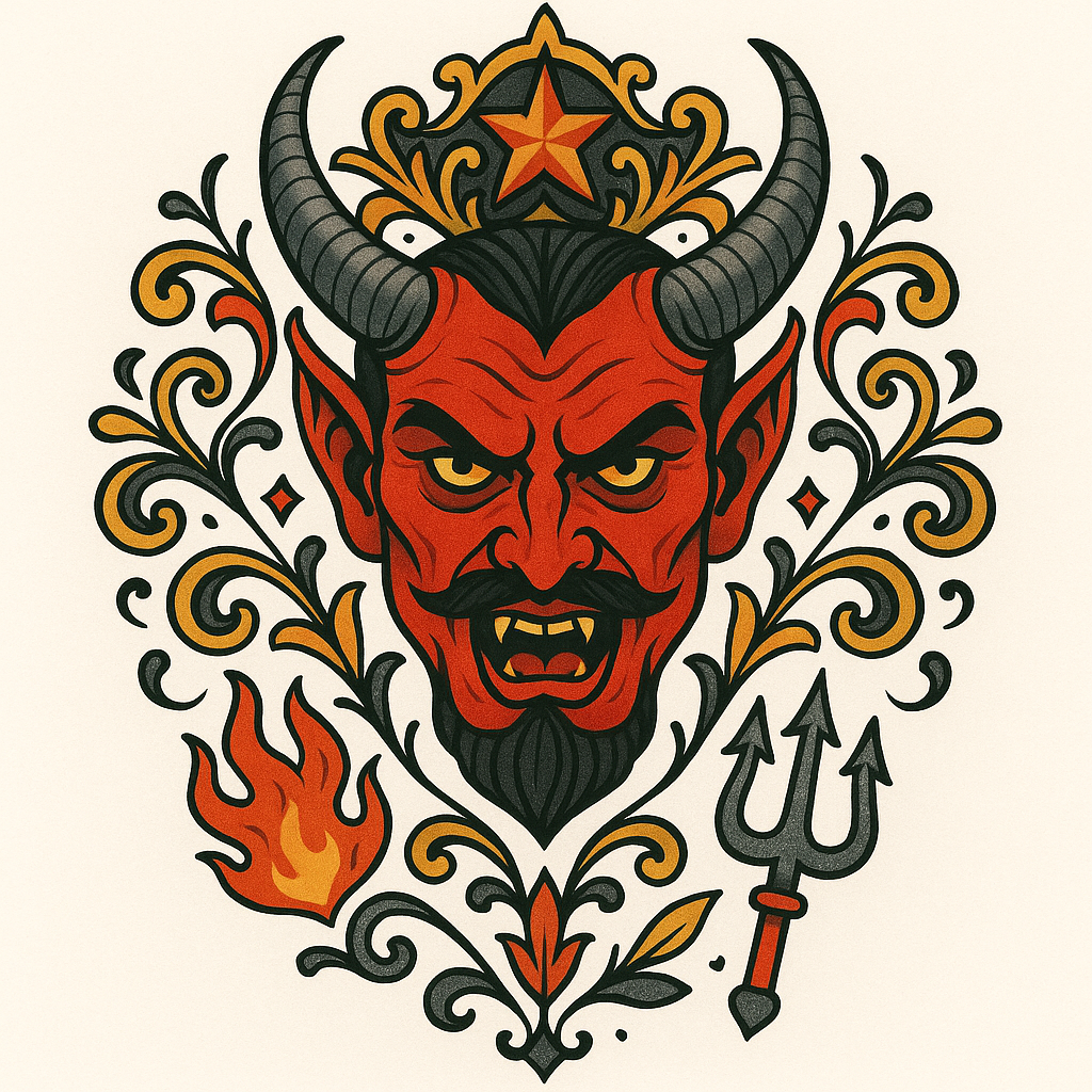 Bold Illustrative Design of a Devilish Character with Ornate Details