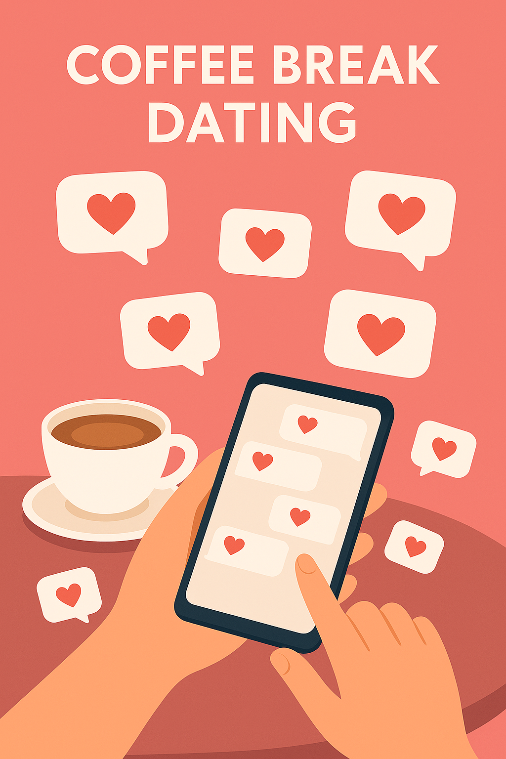 Playful Coffee Break Dating Graphic with Phone and Coffee Cup