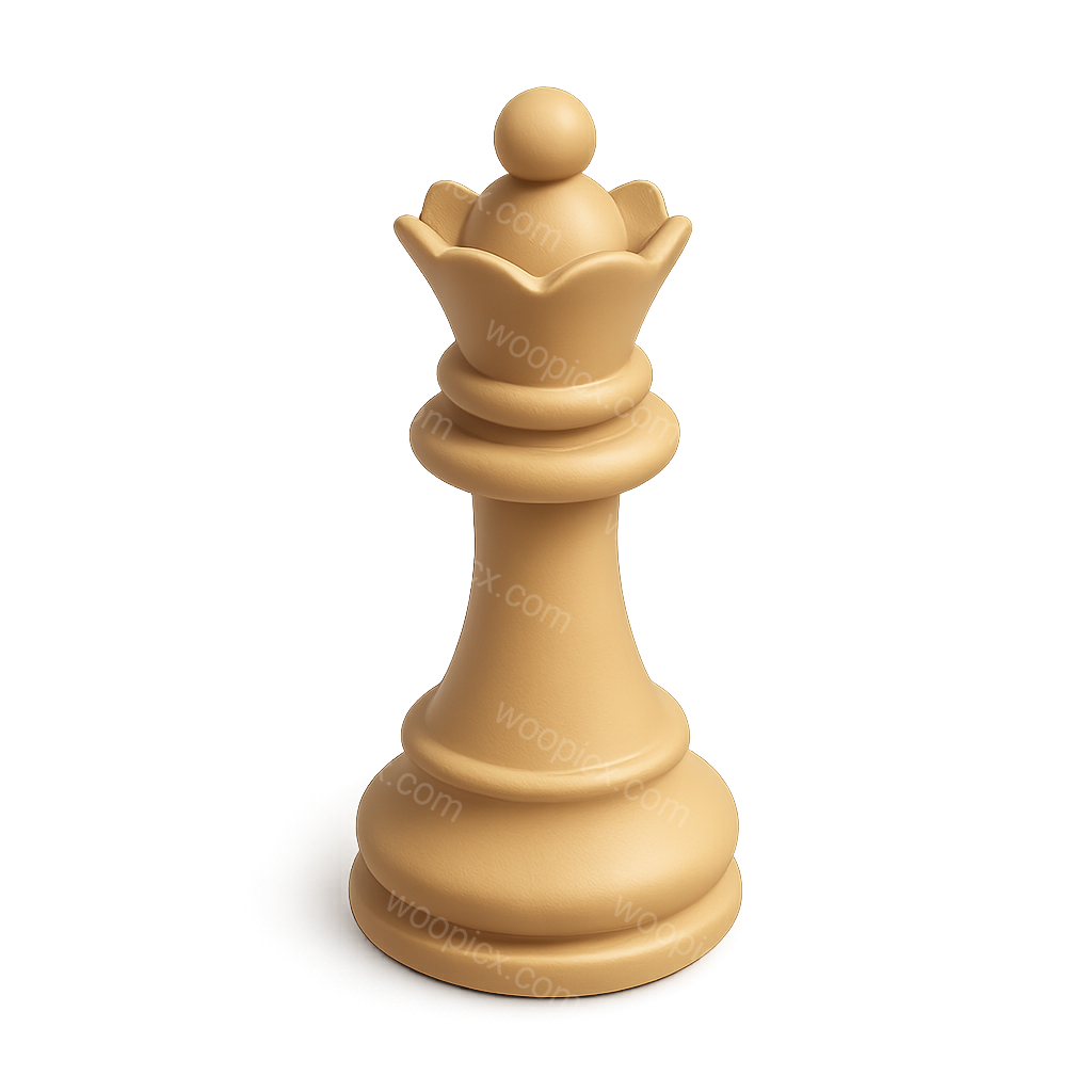 /Premium/Collection: /by davooda/Type: PNG/A stylized 3D representation of a queen chess piece, featuring a smooth surface and a volumetric design. The piece is displayed from a three-quarter angle against a subtle background, emphasizing its elegant shape.