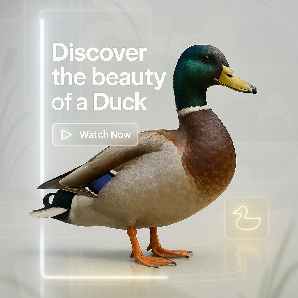 Engaging promotional image featuring a realistic duck illustration with a modern aesthetic, designed to attract viewers for wildlife appreciation content.