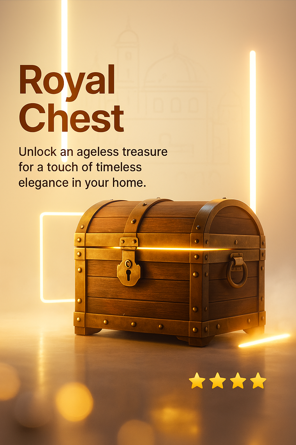 /Collection: /by davooda/Type: PNG/A visually captivating LinkedIn carousel slide featuring a wooden royal chest with neon accents. The design includes layered elements with text and glowing lights for an engaging presentation.