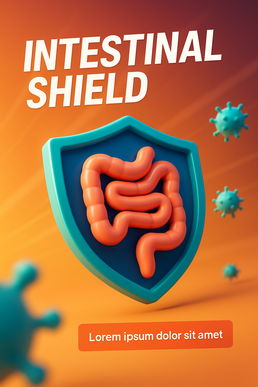 /Collection: /by davooda/Type: PNG/A vibrant 3D illustration representing an intestinal shield, emphasizing health and protection. Ideal for health-related campaigns and educational materials.