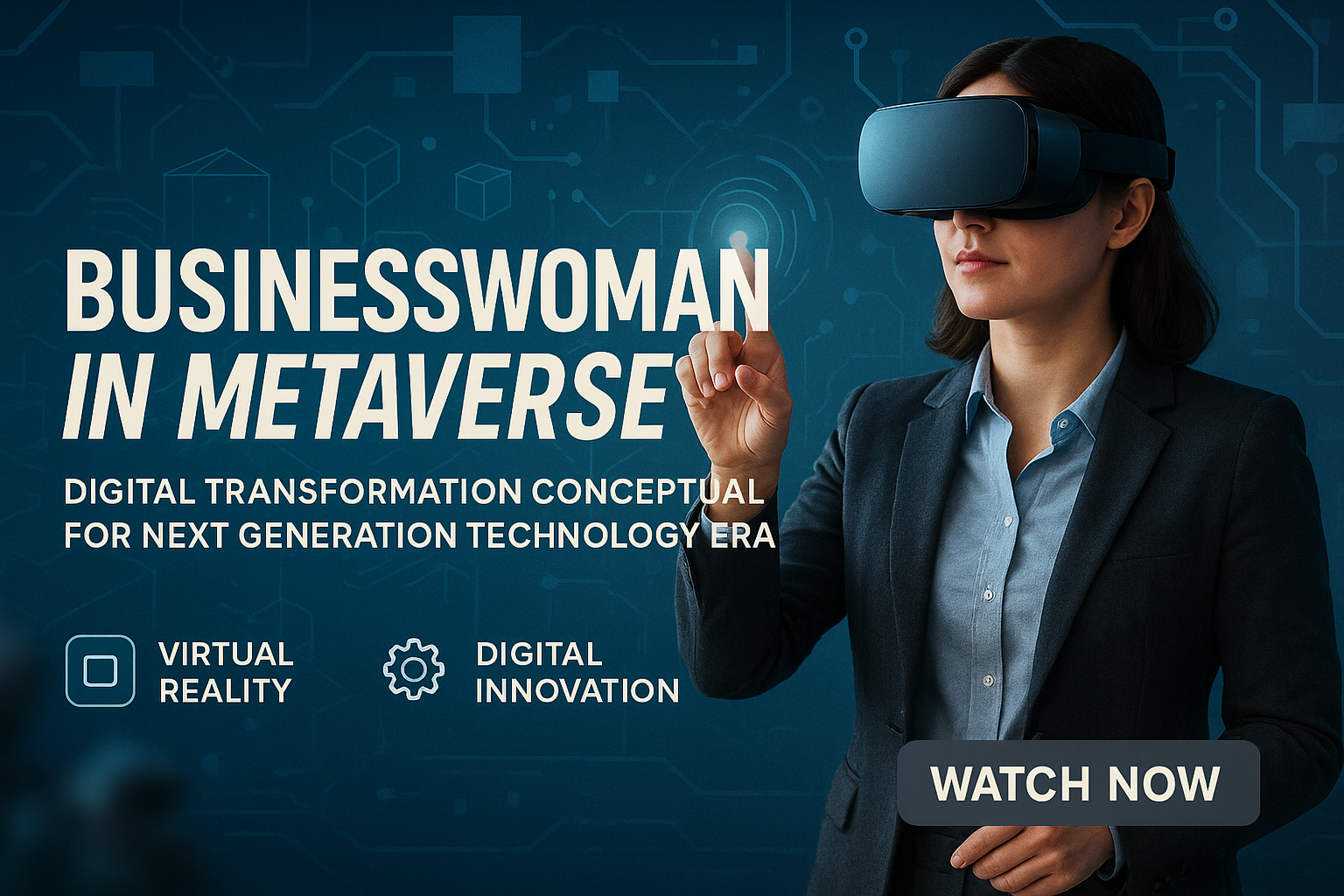Conceptual Image of Businesswoman Engaging with Virtual Reality in Metaverse