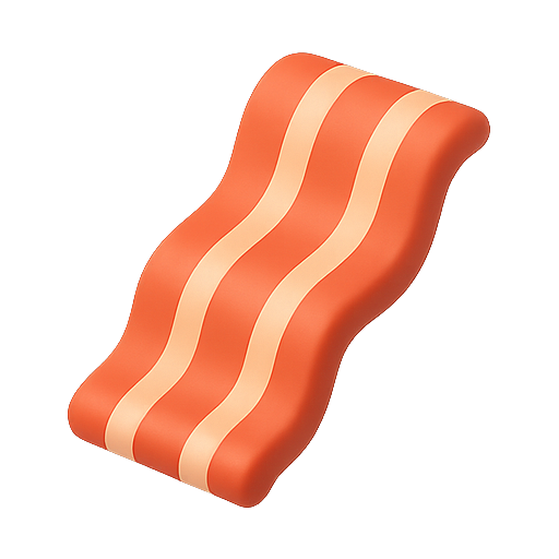 A vibrant and playful 3D illustration of a bacon slice, featuring exaggerated curves and bold colors, ideal for food-related graphic designs or culinary branding.