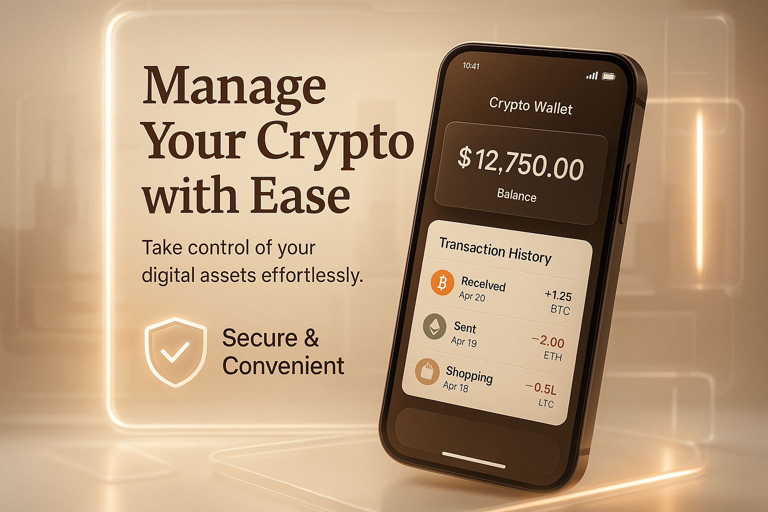 Promotional Graphic for Crypto Wallet App with Modern Design
