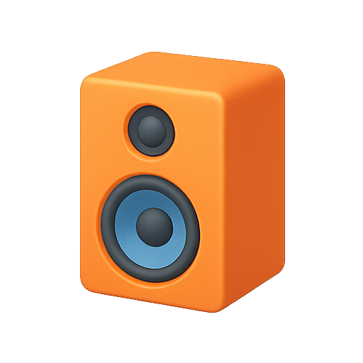 A vibrant, stylized icon of an orange speaker featuring a blue speaker cone, ideal for music or audio-related applications and digital interfaces.
