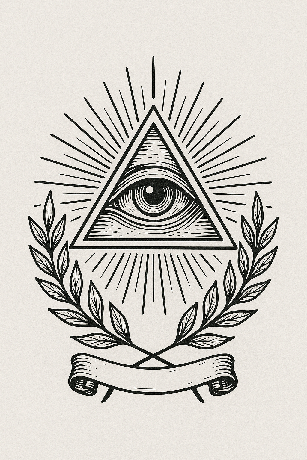 Symbolic illustration of an eye within a triangle surrounded by laurel