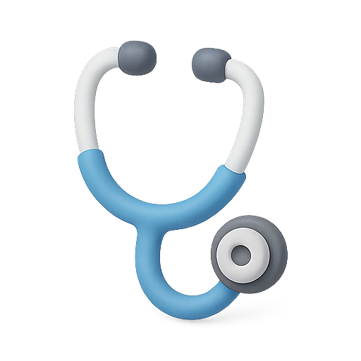 Stylized 3D Medicine Icon Featuring Stethoscope and Pills