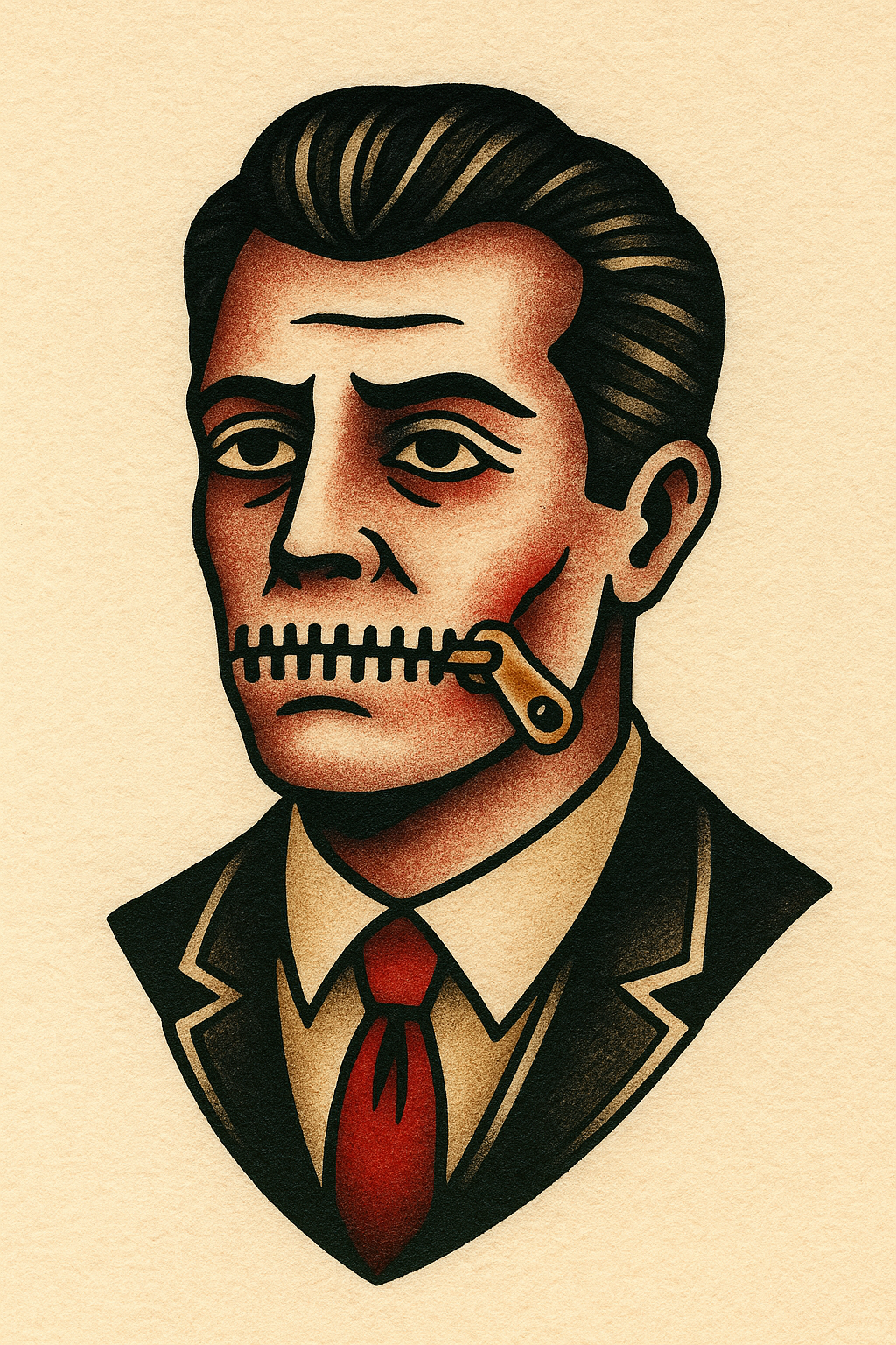 Tattoo Design Featuring a Man with a Zippered Mouth