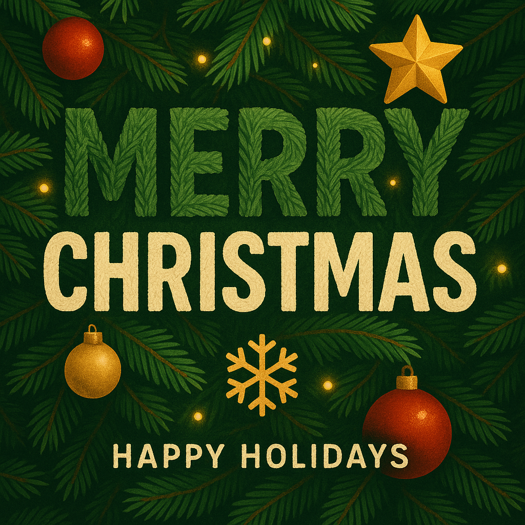 Festive Holiday Decoration Graphic with Ornament and Cheerful Message