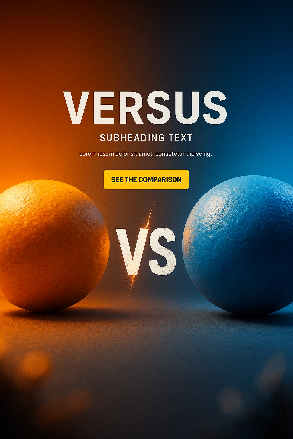 /Collection: /by davooda/Type: PNG/This image is a visually striking comparison graphic showcasing an orange ball and a blue ball. It employs a modern design with vibrant colors, ideal for social media or promotional content.