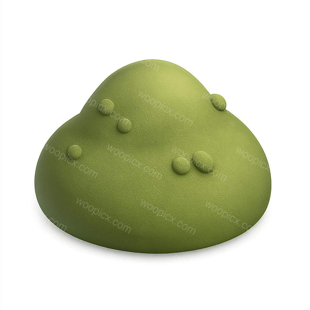 /Premium/Collection: /by davooda/Type: PNG/A soft green, 3D icon resembling moss, presented in a three-quarter view. The design features a smooth, volumetric texture with small rounded details, set against a transparent background.