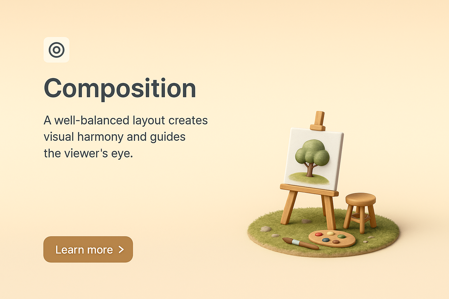/Collection: /by davooda/Type: PNG/A 3D scene depicting an easel with a painting of a tree, surrounded by art supplies. The background features a soft gradient, enhancing the visual appeal and focus on the composition theme.