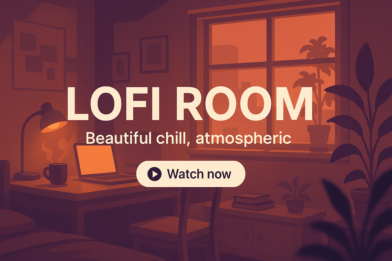 A calming illustration of a lofi room featuring warm colors and cozy elements, perfect for promoting chill music or relaxation content.