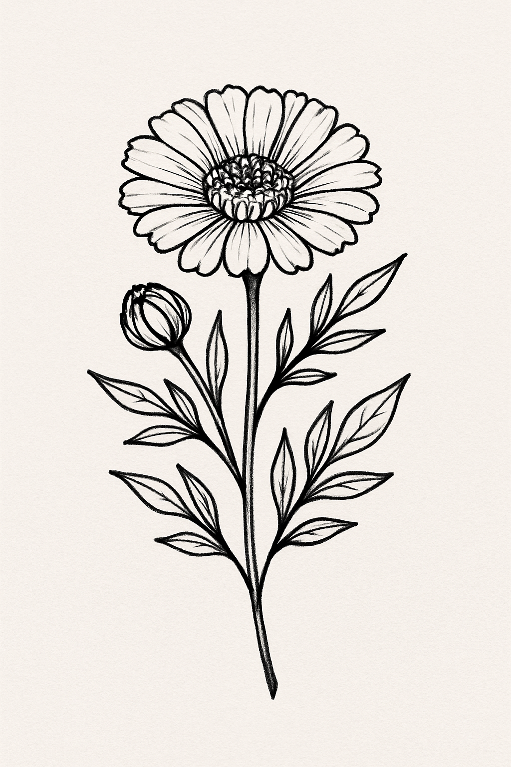 Stylized Floral Illustration of a Daisy with Intricate Details