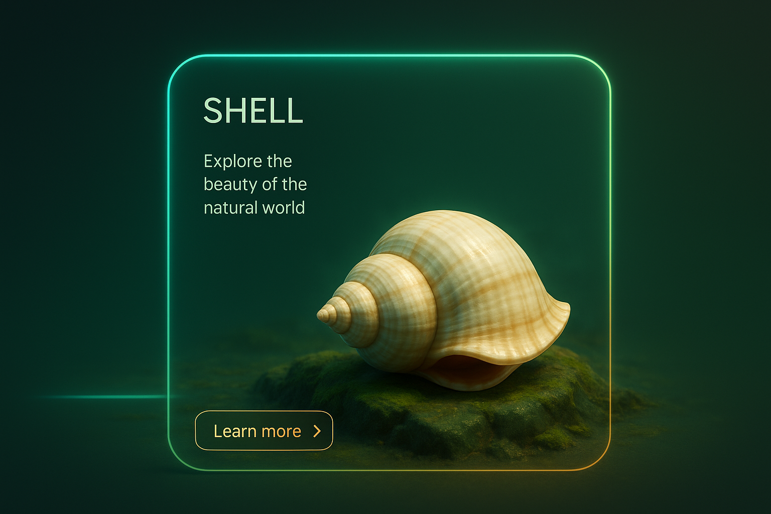 /Collection: /by davooda/Type: PNG/A captivating 3D scene featuring a shell set against a dark gradient background. The design includes neon accents and a soft halo effect, emphasizing the shell's beauty in a misty environment.