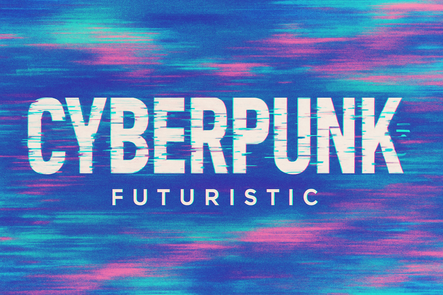 Vibrant Cyberpunk Glitch Background with Bold Typography