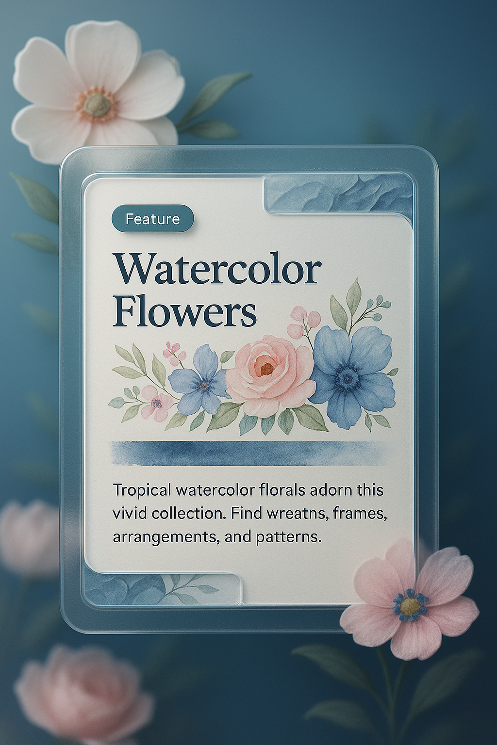 /Collection: /by davooda/Type: PNG/This image showcases a vibrant watercolor floral design featuring a feature block. Beautiful tropical flowers are integrated with a smooth gradient background, enhancing visual appeal.