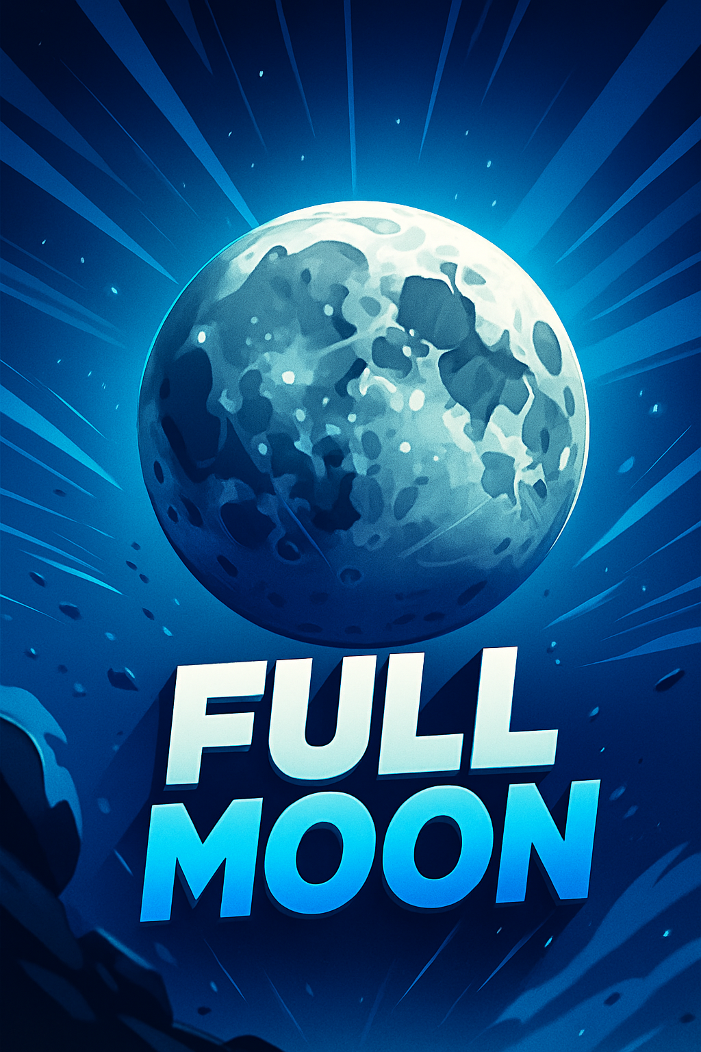 /Collection: /by davooda/Type: PNG/A visually striking illustration of a full moon, radiating dynamic beams of light. The title 'FULL MOON' is designed in bold, engaging typography, set against a smooth gradient background.
