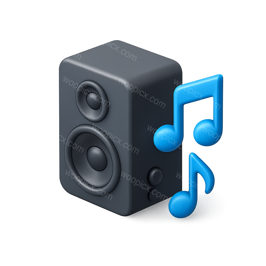 /Premium/Collection: /by davooda/Type: PNG/A stylized 3D speaker icon featuring a sleek design with musical notes emanating from it. The icon is presented in a three-quarter isometric view against a dark background, highlighting its volumetric quality.