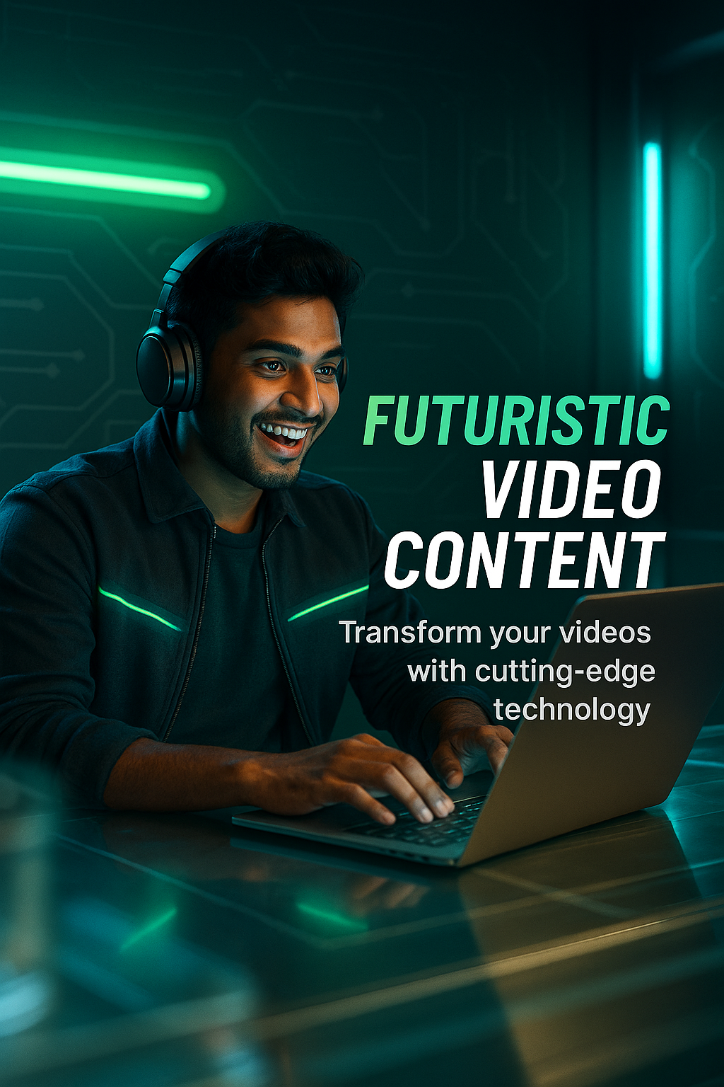 /Collection: /by davooda/Type: PNG/A visually appealing graphic featuring a young man using a laptop in a futuristic setting, ideal for promoting video content services. The design combines modern aesthetics with a tech-focused theme.