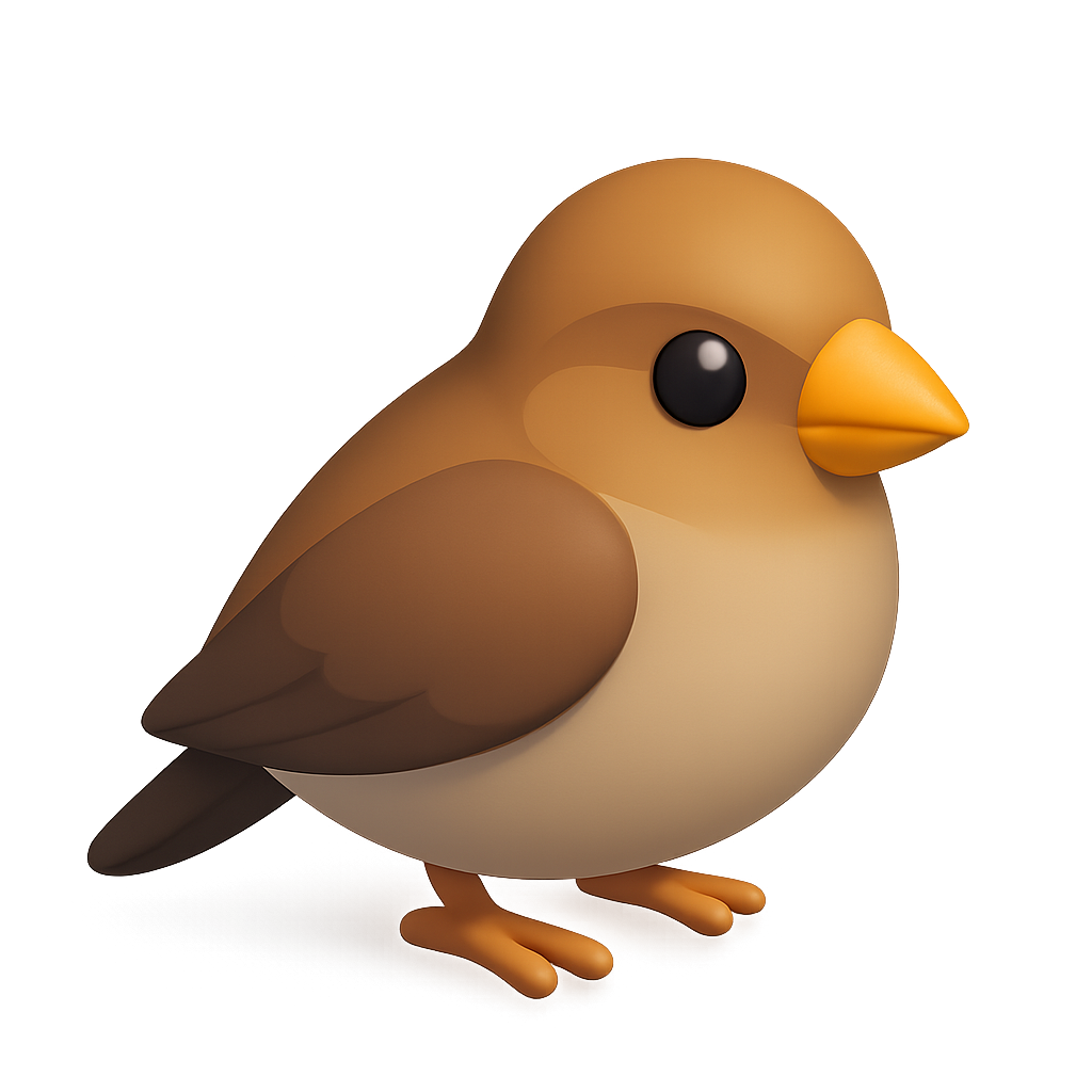 /Collection: /by davooda/Type: PNG/A stylized 3D finch icon featuring a small beak, presented in a three-quarter view. The bird has a smooth, cartoonish design with warm colors and is set against a blurred, dark background.