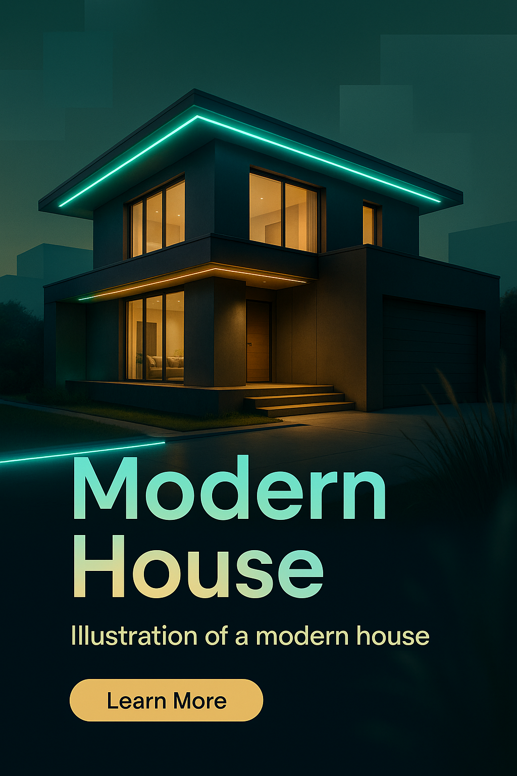 Visually striking illustration of a modern house featuring sleek lines and ambient lighting, ideal for architecture or real estate promotions.